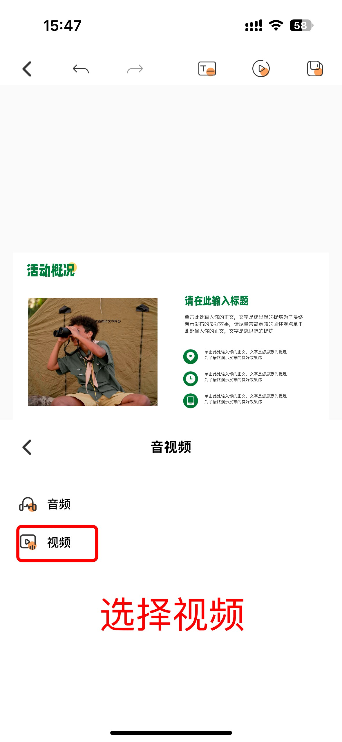 在制作PPT时,适当插入视频不仅能提升观众的专注度,也能丰富内容表达效果,特别适用于企业汇报、教学课件、产品展示等场景。那么,PPT怎样插入视频?下面为你详细讲解操作步骤与应用建议。一、插入视频的操作方法:1.打开你的PPT文件,点击工具栏中音视频选项;点击音视频-PPT制作2.接着选择【视频】;选择视频-PPT制作3.选中手机的本地视频文件,视频将直接添加到当前幻灯片中;选择视频插入-PPT制作