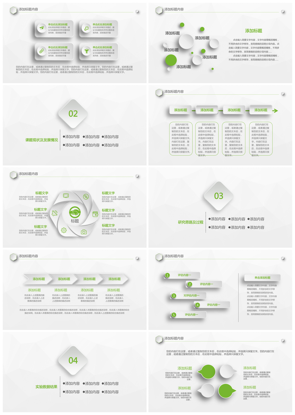 本站提供的绿色清新框架完整毕业答辩PPT模板,下载格式为pptx,一共32页,作品中文字及图均可以修改和编辑,图片更改请在作品中右键图片并更换,文字修改请直接点击文字进行修改。