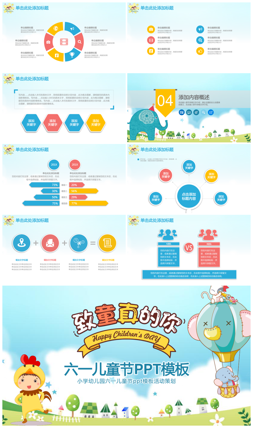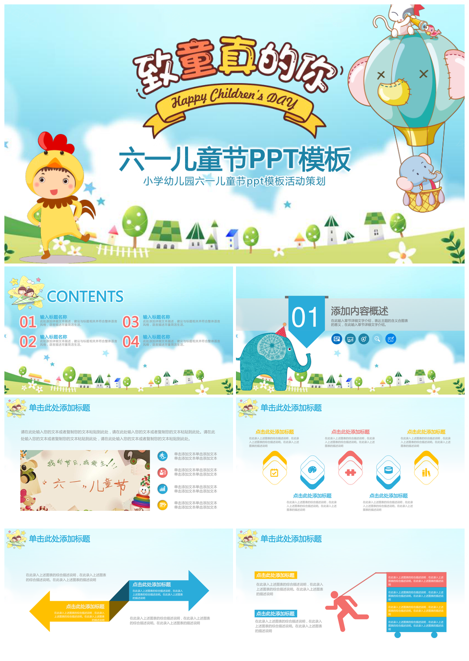 本站提供的彩色放飞梦想儿童卡通六一儿童节通用动态PPT模板,下载格式为pptx,一共36页,作品中文字及图均可以修改和编辑,图片更改请在作品中右键图片并更换,文字修改请直接点击文字进行修改。