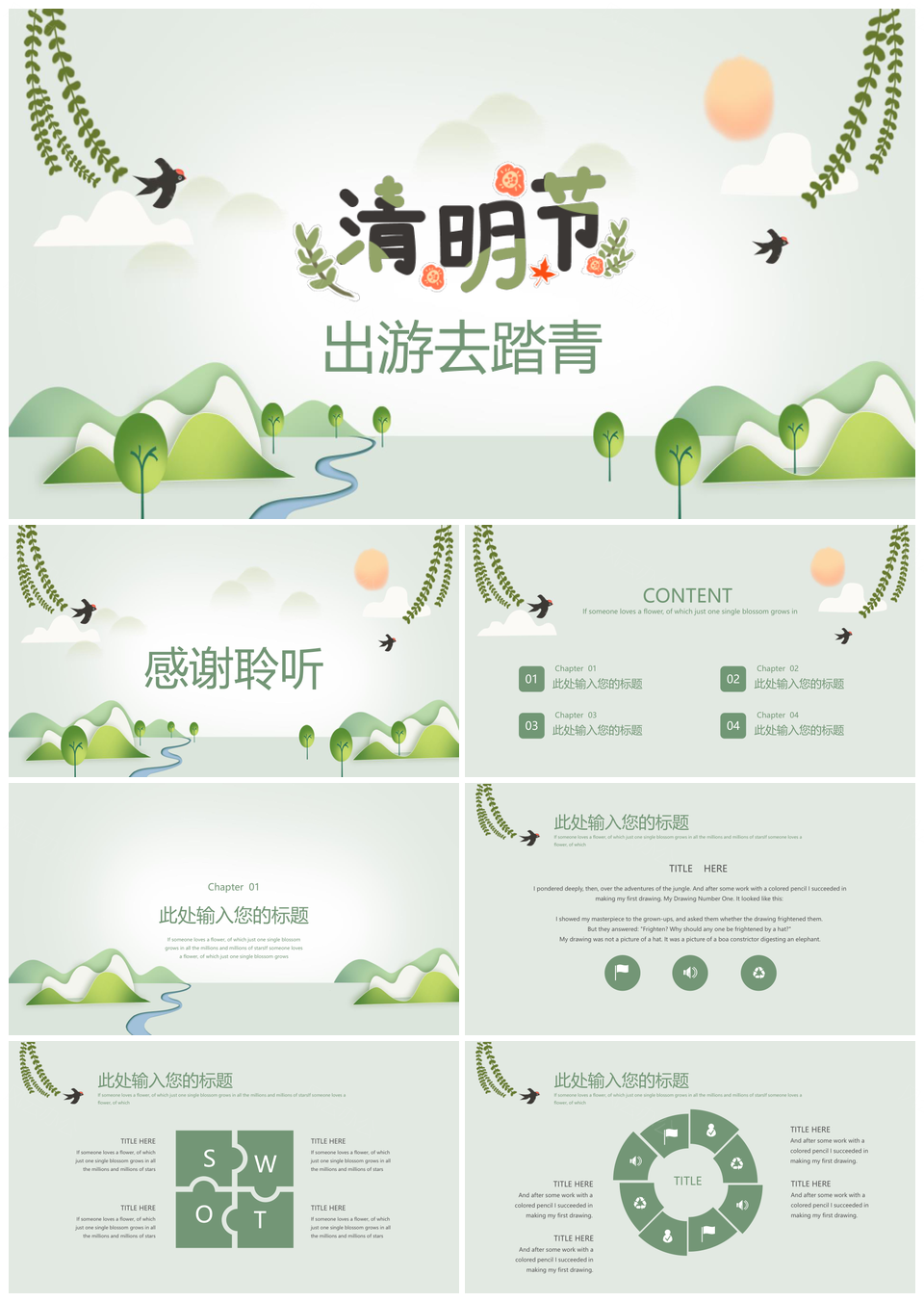 这是一张清明节出游踏青小清新绿色环保PPT模板,包含清明节、出游、踏青、小清新、绿色、环保等主题内容,也可用作清明节出游踏青小清新、踏青小清新绿色环保、清明节踏青绿色环保、出游小清新绿色环保、清明节出游踏青、踏青小清新绿色、小清新绿色环保、清明节绿色环保、出游踏青环保、踏青绿色环保、清明节踏青、踏青小清新、小清新绿色、绿色环保、清明节出游、出游踏青、出游小清新、踏青环保、清明节绿色、小清新环保等PPT场景使用。