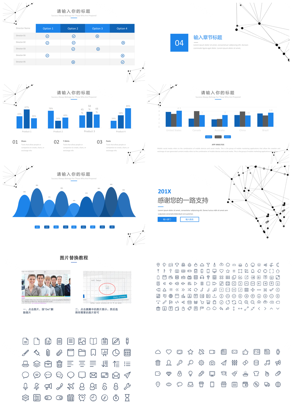 本站提供的2025蓝色小清新创意点线简约工作总结PPT模板,下载格式为pptx,一共50页,作品中文字及图均可以修改和编辑,图片更改请在作品中右键图片并更换,文字修改请直接点击文字进行修改。