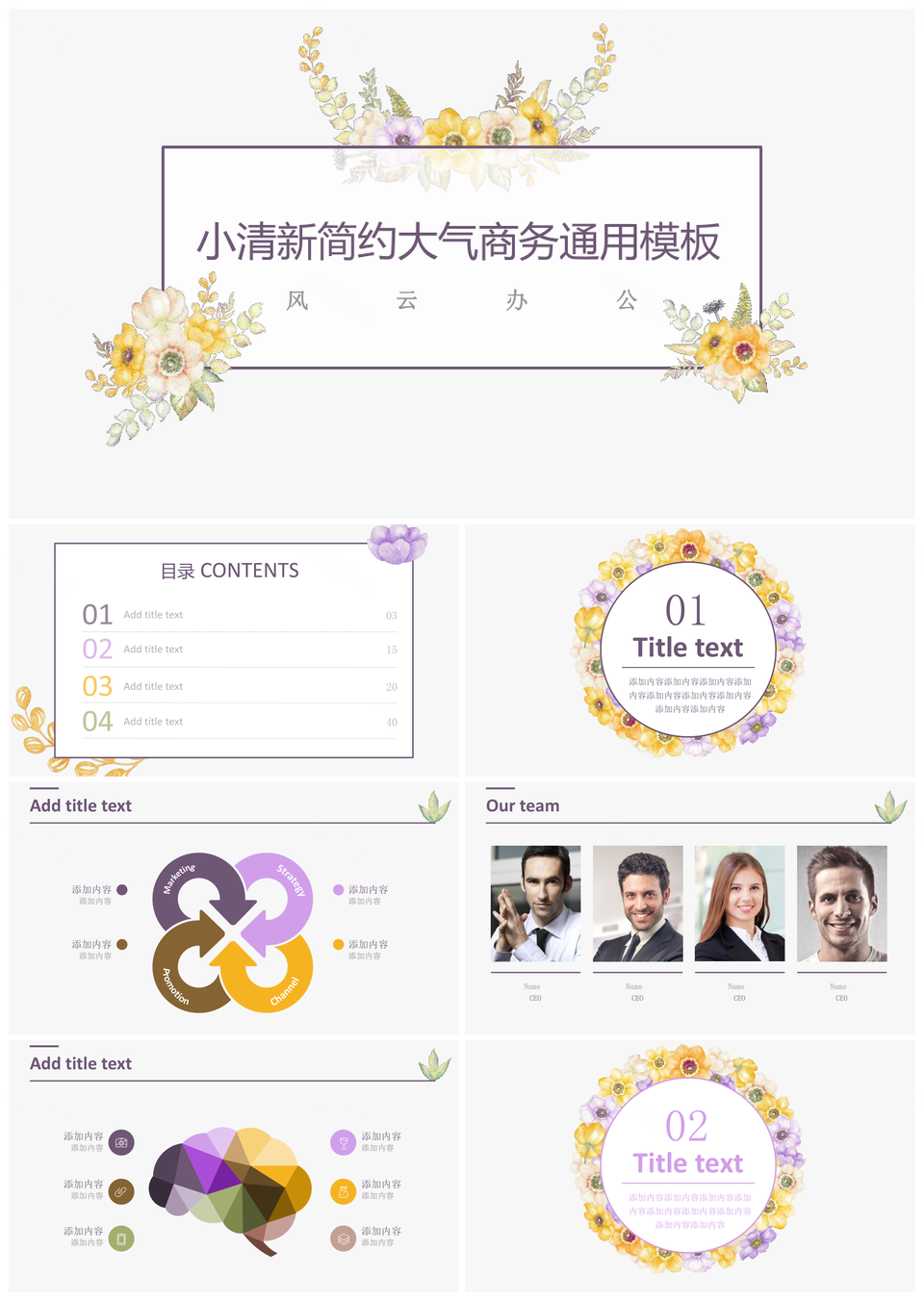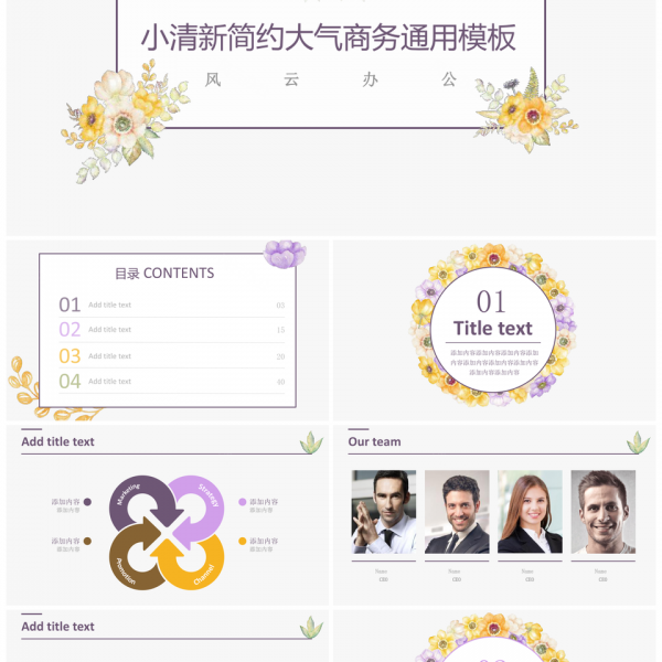本站提供的黄色小清新简约大气商务PPT模板,下载格式为pptx,一共31页,作品中文字及图均可以修改和编辑,图片更改请在作品中右键图片并更换,文字修改请直接点击文字进行修改。
