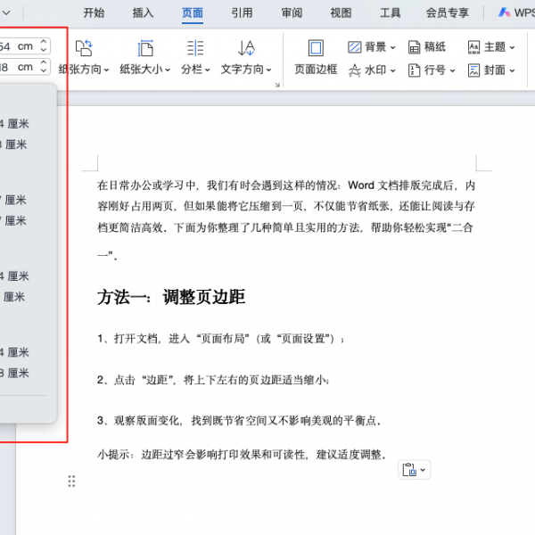 贴士:不要将边距压缩过度,否则会影响打印效果和阅读舒适度。