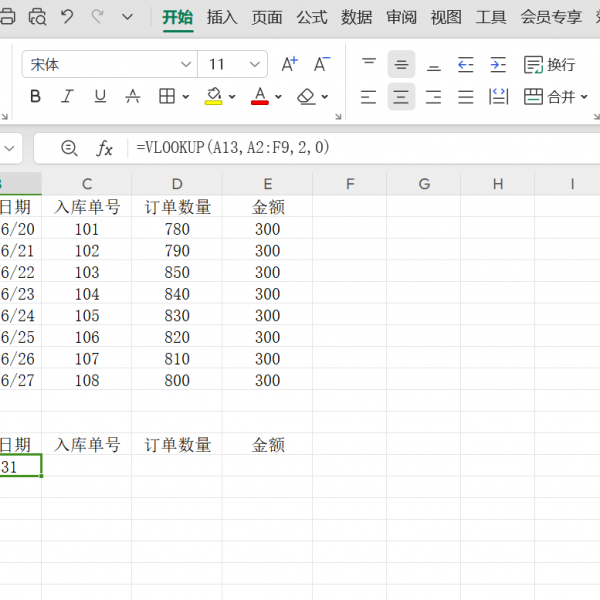 1.函数应用:当需要根据订单号调取对应数据时,VLOOKUP函数是首选工具。例如在单元格中输入公式=VLOOKUP(A13,A2:F9,2,0),其中A13为目标订单号所在单元格,A2:F9是订单数据库的整个数据区域,“2”代表要调取数据所在的列(如送货日期列),最后一个参数“0”表示精确匹配,确保调取数据的准确性。