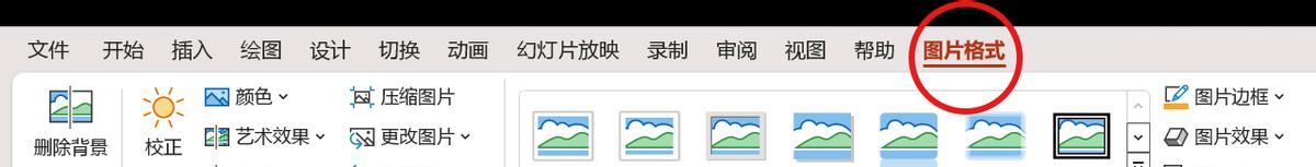 单击 “图片格式” 选项卡。这个选项卡中包含了与图片处理相关的各种功能。