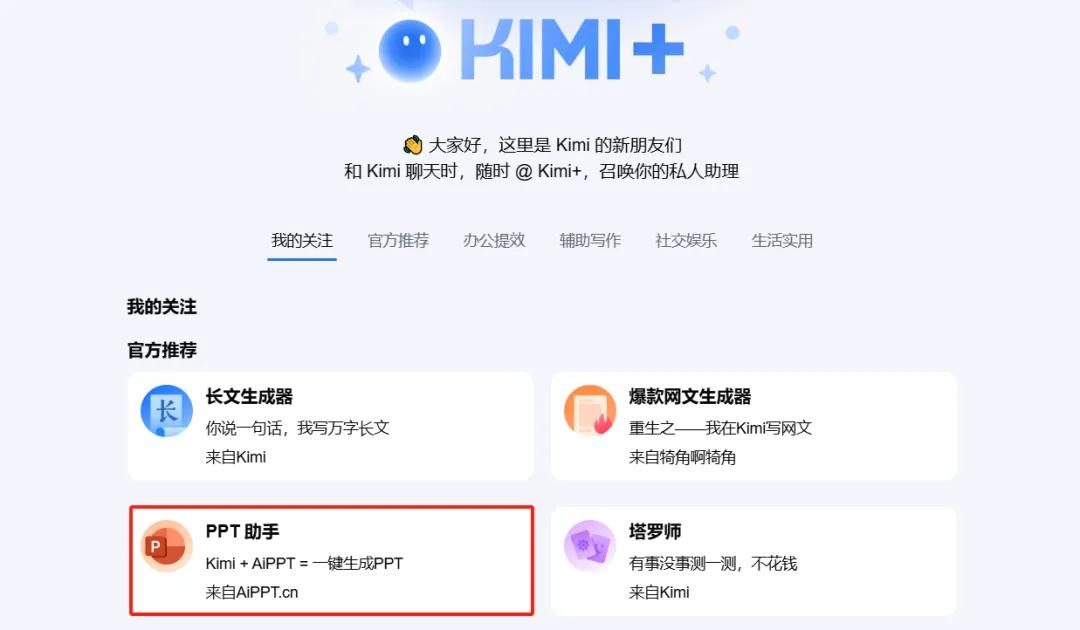 2、将内容复制到 Kimi 进行 PPT 生成:紧接着,打开 Kimi 官网,找到其中的 PPT 助手功能。